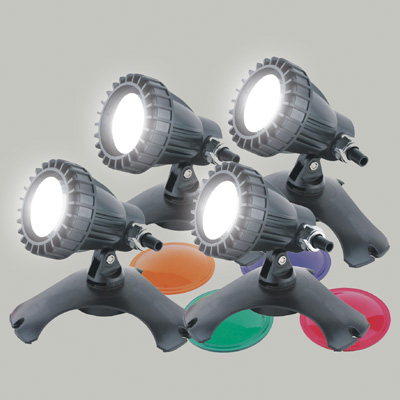 These pond lights look the business with their attractive (weighted) tripod stands and powerful illumination and are suitable for use both above and below the waterline.