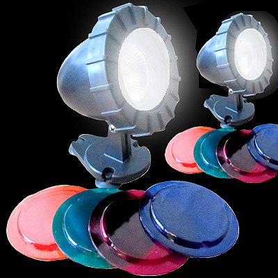 This super submersible pond light comes complete with four coloured discs (orange, green, blue and red).
