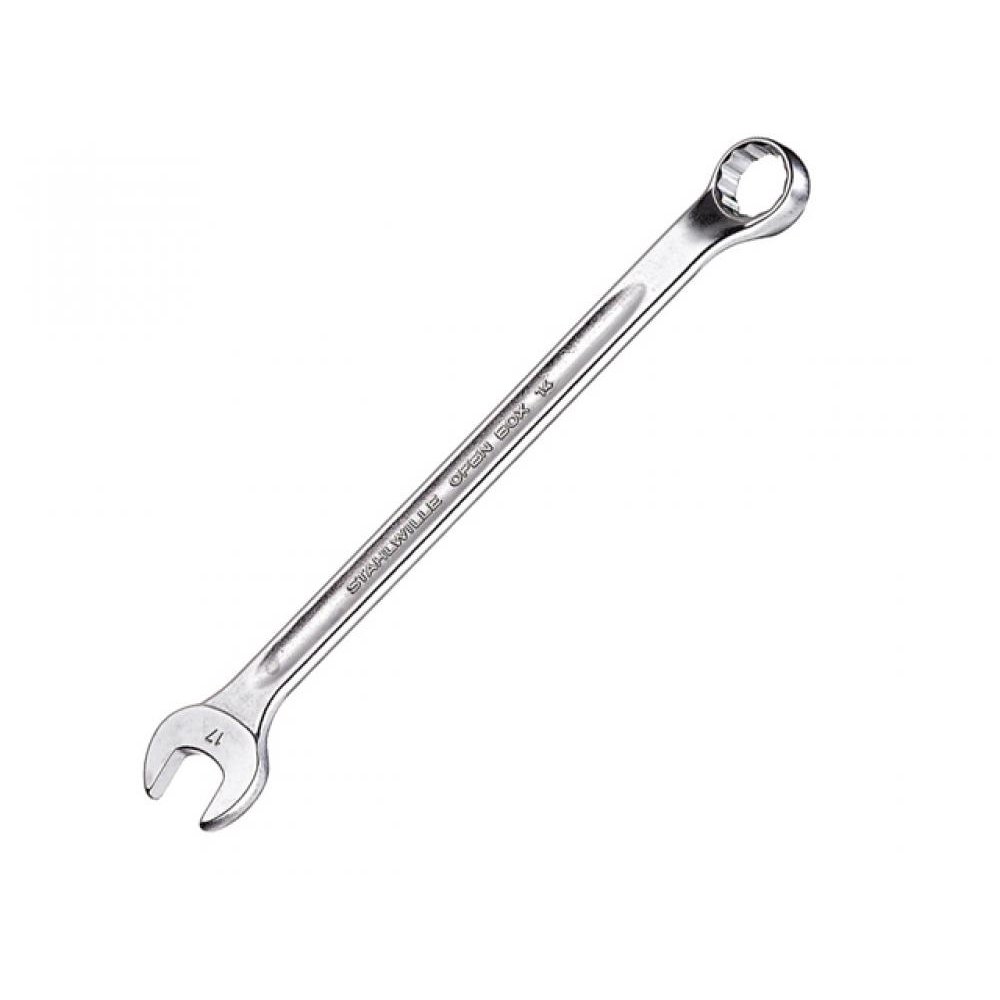 Stahlwille Long Series Combination Spanners. Metric, drop forged high-grade special steels and chrome plated. Manufactured to DIN 3113 form B/ISO 7738 form B. The spanners have been optimally hardened in continuous furnaces with no scale build-up or skin decarburisation and gently quenched in oil. They are extremely strong yet lightweight due to Stahlwille’s ‘double-T profile’. The unique plating method prevents the problem of chrome flaking. The ring end of the spanners are equipped with Anti-Slip Drive profile to permit high transmission of forces to the flats of the nuts and bolts without damaging them. MADE IN GERMANY.Stahlwille Combination Spanner. Size: 19mm.Length: 265mm.