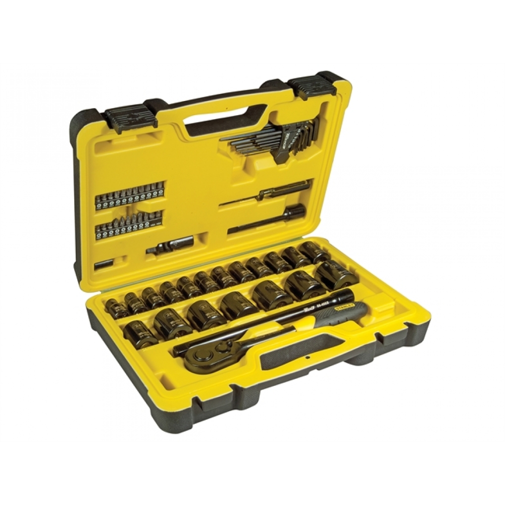 Limited Edition Stanley Tech3 Socket Set Black chrome socketry for premium corrosion resistance This set contains: 1/2in Socketry: Ratchet, sockets 10-32mm, 75mm & 250mm extensions, UJ, MM hex key set Also contains 1/4in SD bit driver, adaptor and 22 x screwdriver bits