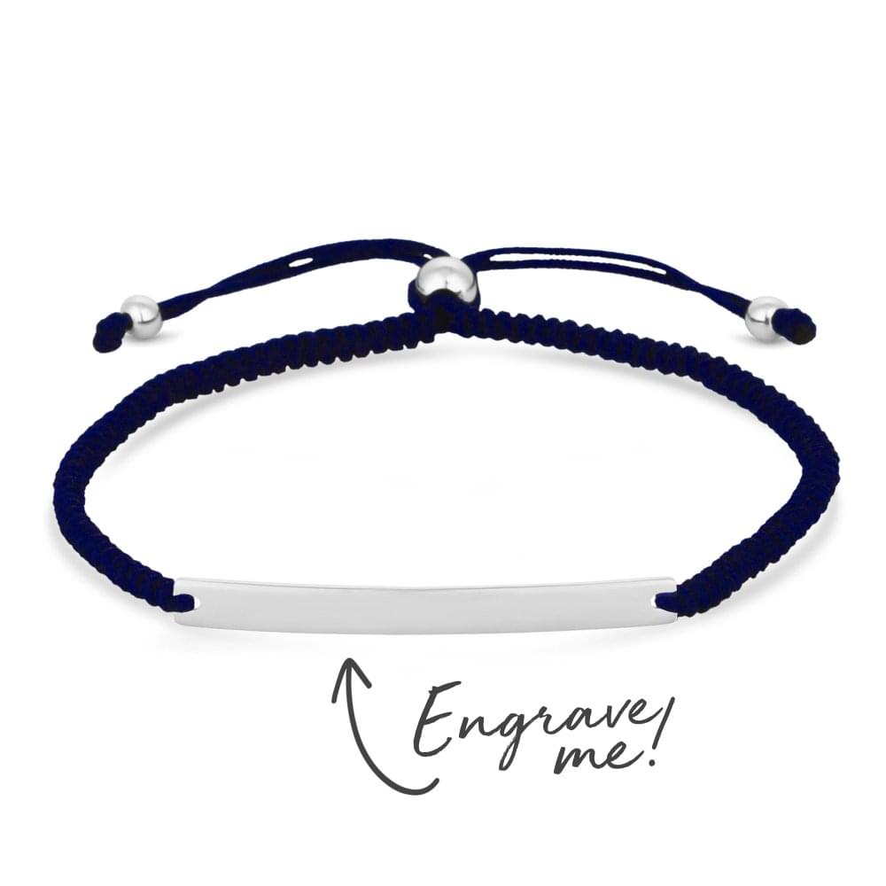 Sterling Silver 925 Bar On A Navy Cord Toggle Bracelet – Personalise By Engraving