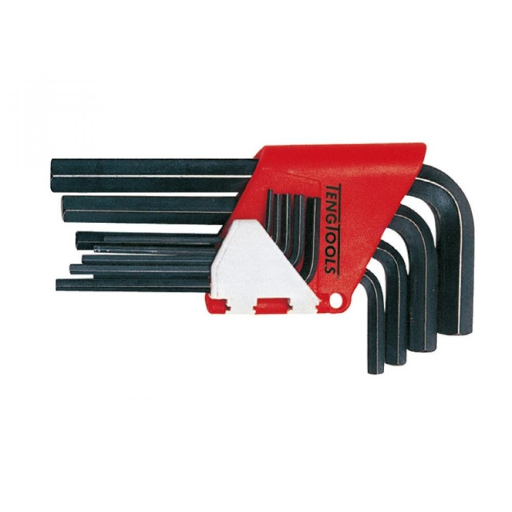 This Teng Tools 9 piece set of hexagon keys is supplied in a handy folding plastic holder for easy storage. The keys are made from chrome vanadium steel for strength and durability. They have a long arm which allows access to more difficult to reach places, and a short arm which ensures excellent torque and leverage.Colour: black.The Teng Tools TEN1479MMR Hex Key Set comprises the following key sizes: 1.5mm, 2mm, 2.5mm, 3mm, 4mm, 5mm, 6mm, 8mm and 10mm.