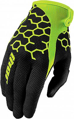 4-way stretch mesh and expansion panels allow full range of motion in hands Venting mesh throughout backhand and perforated palms keep hands cool throughout Silicone pattern print on backhand adds minimalistic structural element Notched wrist opening provides ease of access Silicone treated finger tips for improved traction Hook and loop wrist closure system Single-layer palm Rubber details for added structure