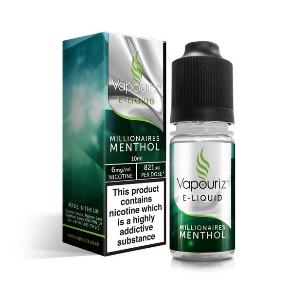 One of the best selling menthol E-Liquids on the market, Millionaries Menthol is outrageously cool and fresh.It took Vapouriz almost a year to finalise this formulation and they are proud to say that it’s here – but it’s not for the faint hearted because it’s an XXL menthol.Vapouriz is one of the UK’s biggest e-liquid producers. It has a state-of-the art plant, with all its liquid produced in ISO class 7 certified cleanrooms.