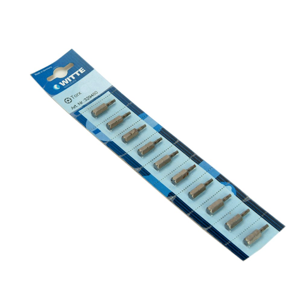 Tamperproof Torx screwdriver bits.Size: T40 x 25 mm long with 1/4in hexagon drive.Strip of 10.