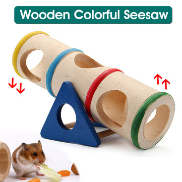 Wooden Seesaw Pet Cage House Hide Colorful Play Toy