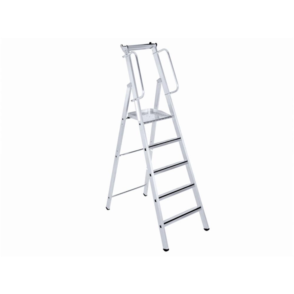 The Zarges Masterstep is safe and comfortable for optimum freedom of movement. It has a particularly large work platform (400mm x 400mm) with aluminium checker plate surface and 80mm deep steps with ZARGES Safer Step Technology for fatigue-free standing. Two handrails are supplied as standard for safe access. The ladder has an extra wide base which provides additional stability, and two high-strength Perlon straps for preventing splay. Its treads and stiles are made from extruded aluminium sections, and have high strength ZARGES quality flanged connections. In addition, two side locking bars prevent the step collapsing in use / during movement. Includes practical aluminium storage tray for small items, and an extra high knee rail. They conform to EN 131 standards, and have a 150 Kilo rating. Has a 10 year guarantee.Number of treads: 4. Platform height: 1.06m. Closed length: 2.15m. Weight: 6.6kg. Stile depth steps / back stay: 73 / 58mm. Overall base width: 0.62m. Base spread: 1.07m. Delivered Direct to Business, Site or Home, please note a carriage surcharge may apply dependant on the delivery address, please contact us for further details.